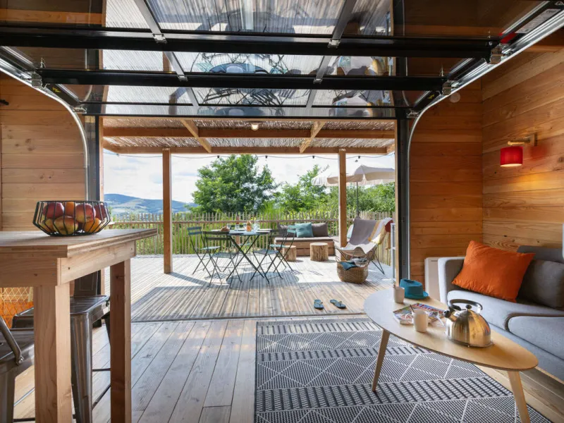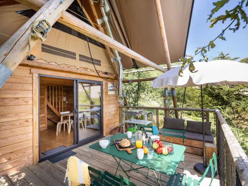 Experience a life-size stay, with an exceptional view over the Rhône Valley and the Monts du Lyonnais. Relaxation guaranteed on this 100% pedestrian-friendly site in the heart of a protected natural setting.Sleep in one of our exclusive and original, fully-equipped accommodations: Cabanes, Cahutte, Trappeur and Canadienne tents, and Chalet Toronto for up to 6 people, with large terraces featuring a lounge area and a plancha. Bed linen and towels are included.