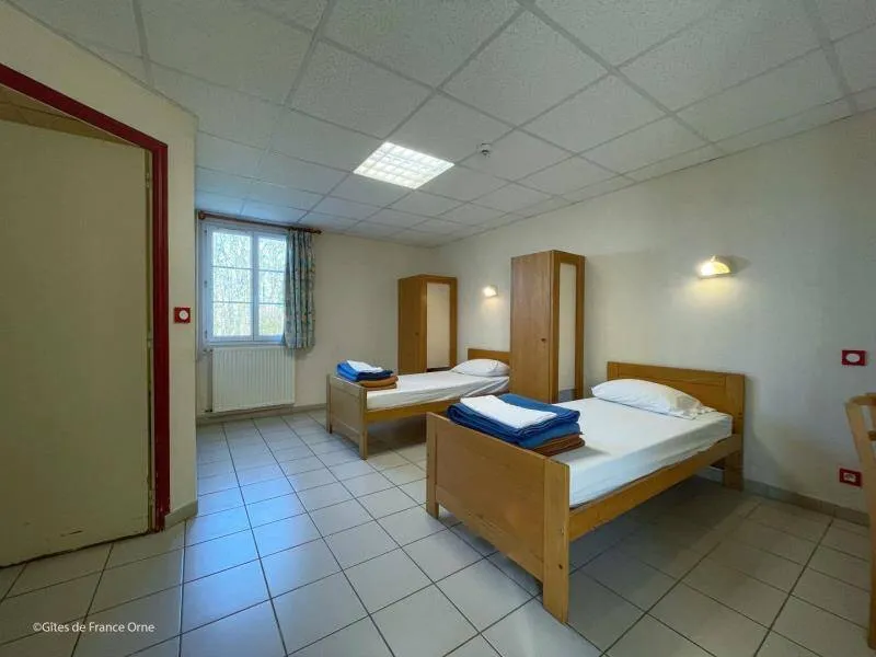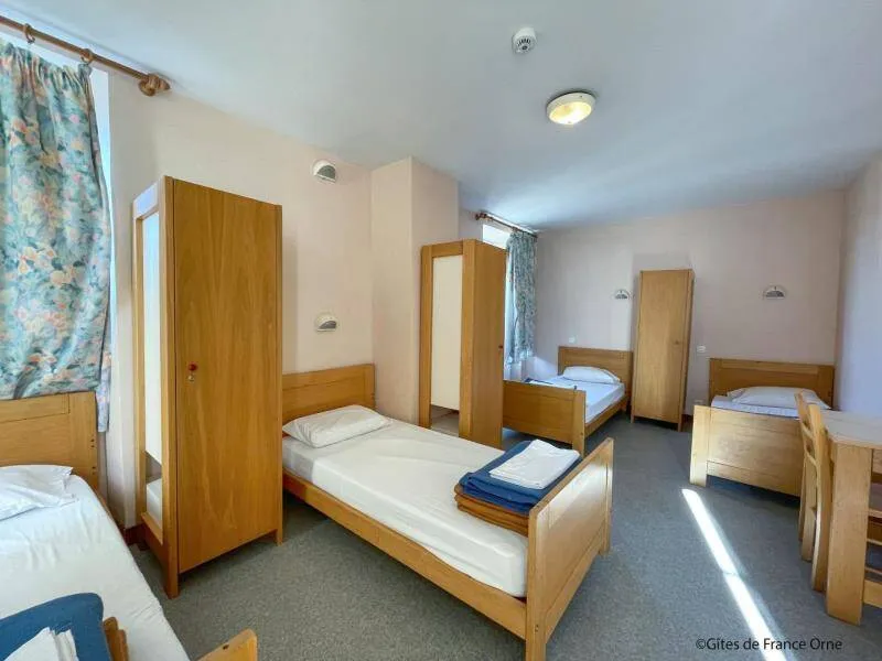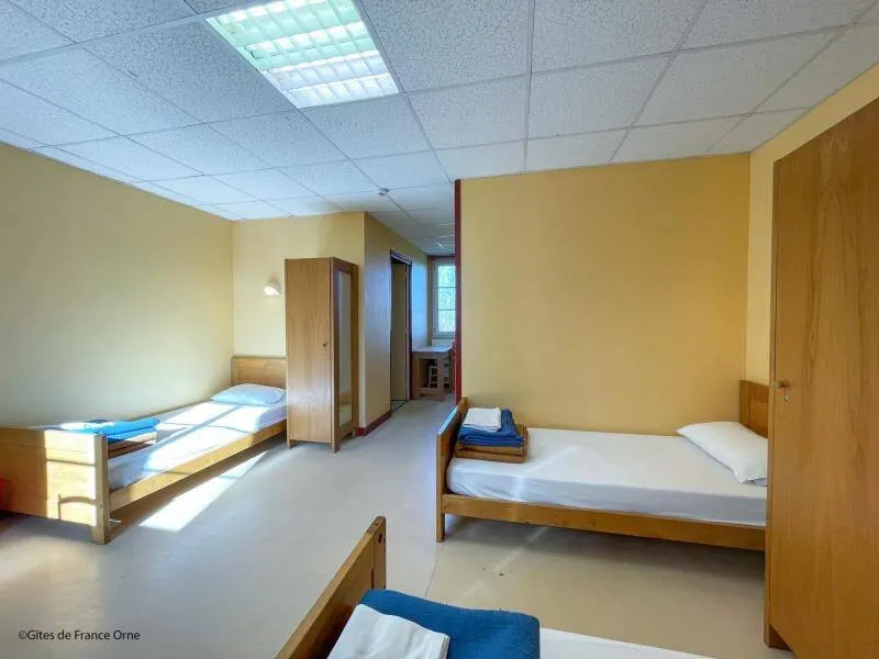 Restored det. dwelling. Grnd flr: dining rm, divisible living rm (fireplace), industrial kitchen, 1 bedrm (5 sgle beds), 1 bedrm (3 sgle beds), lavatory. 2 upper floors: 11 bedrms (42 sgle beds). Each w/shower & lavatory. Cent. heat. Wooded grounds. Sheets supplied. Educational field trips.In the heart of the 'Normandy Maine Regional Nature Reserve' and 1 hour from Mont-Saint-Michel, in a village awarded an international floral prize, this gîte welcomes you for business or leisure breaks to take advantage of the many activities and events.