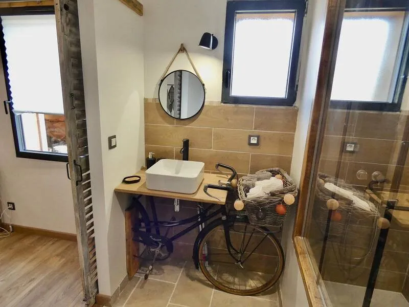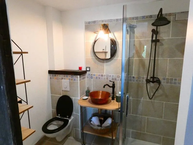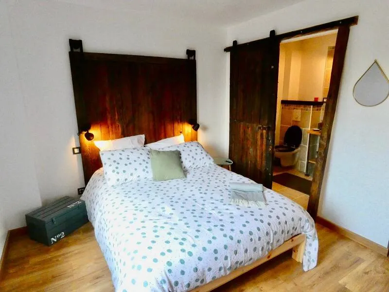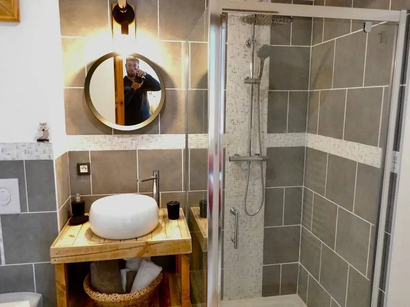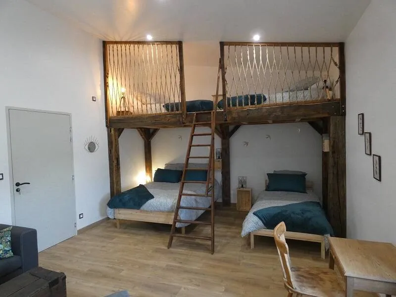 This lodging of stage is composed of a heated veranda with corner bar, kitchenette and table soccer, of 5 large comfortable rooms each one equipped with its bathroom, of a luminous mezzanine with a net of relaxation overhanging a corner dining room with its stove with granulates ensuring the heating by hot water circulation.