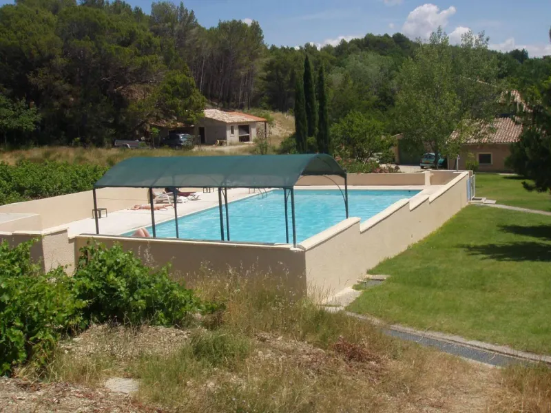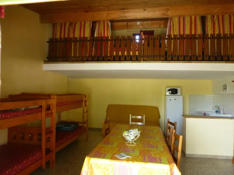 Dortoir pour 10 personnes (6 au rez de chaussée en lits superposés, 4 en mezzanine), cuisine, salle d’eau et wc.Côté extérieur : directement dans la nature, table, transats à votre disposition, grande piscine.