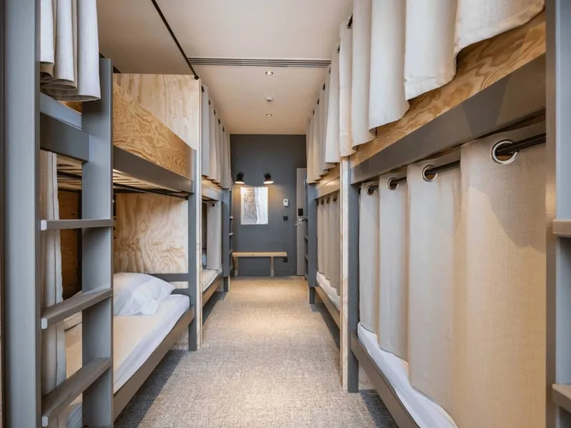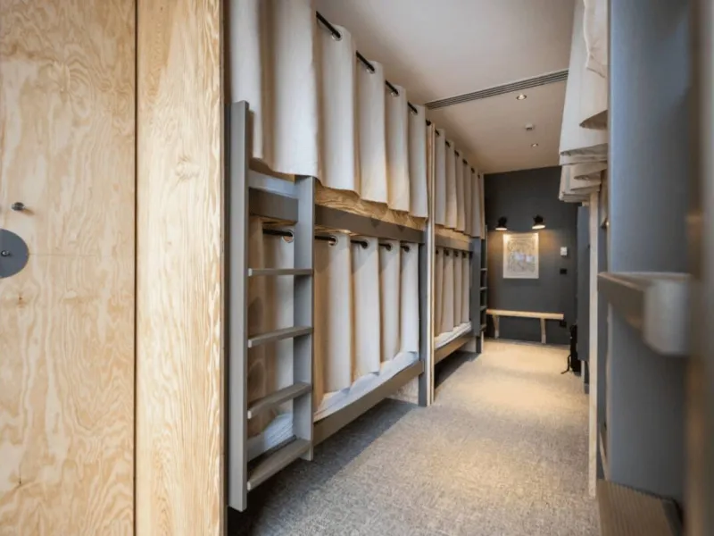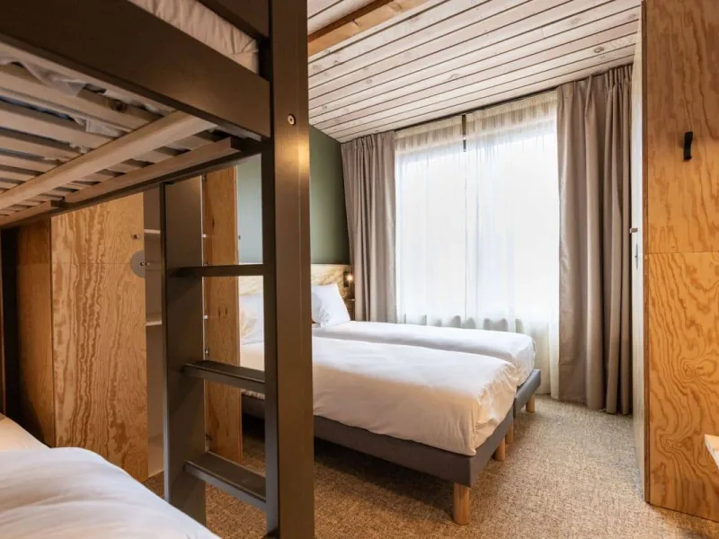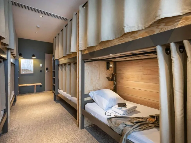The hotel offers 4 types of accommodation: dormitories for 4, 6, 8 or 12 people in bunk-bed format. A 4-person dormitory is sold privately, and 1 6-person dormitory is reserved exclusively for women. For greater comfort, you can opt for a room or a chalet. Choose dormitories with private or shared shower rooms.