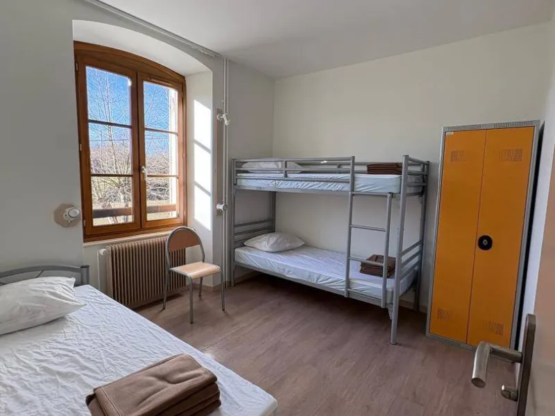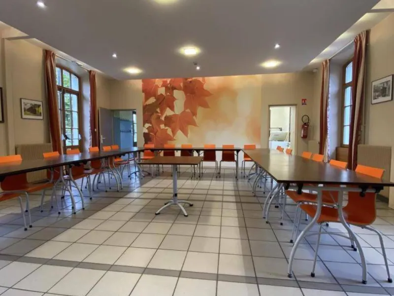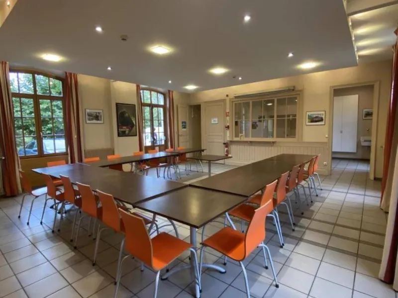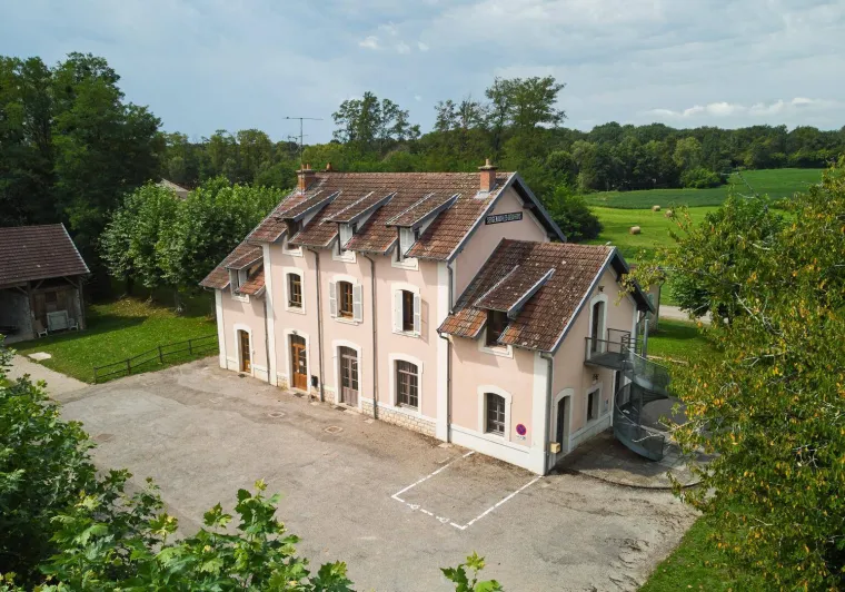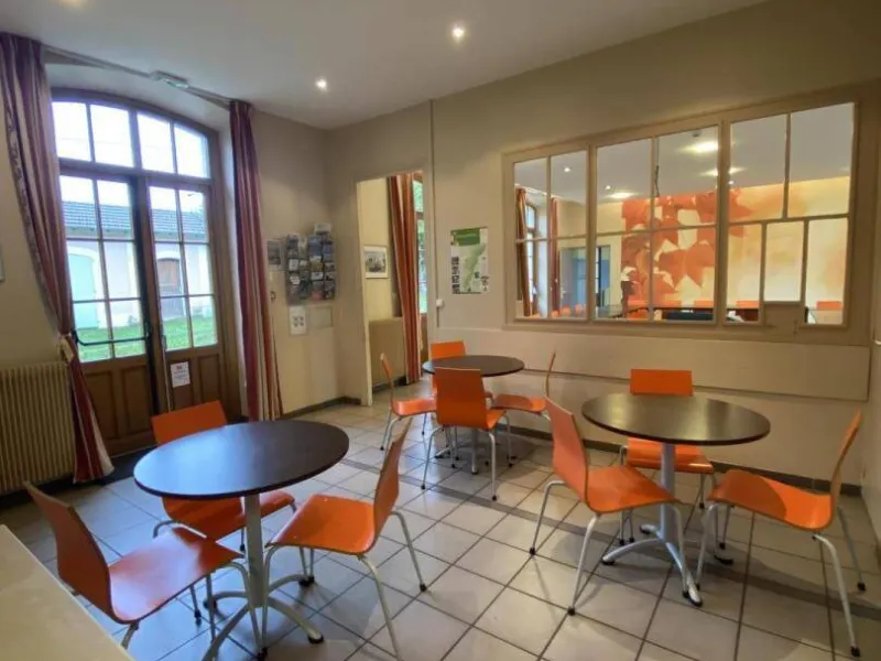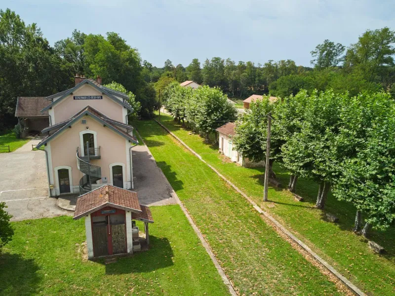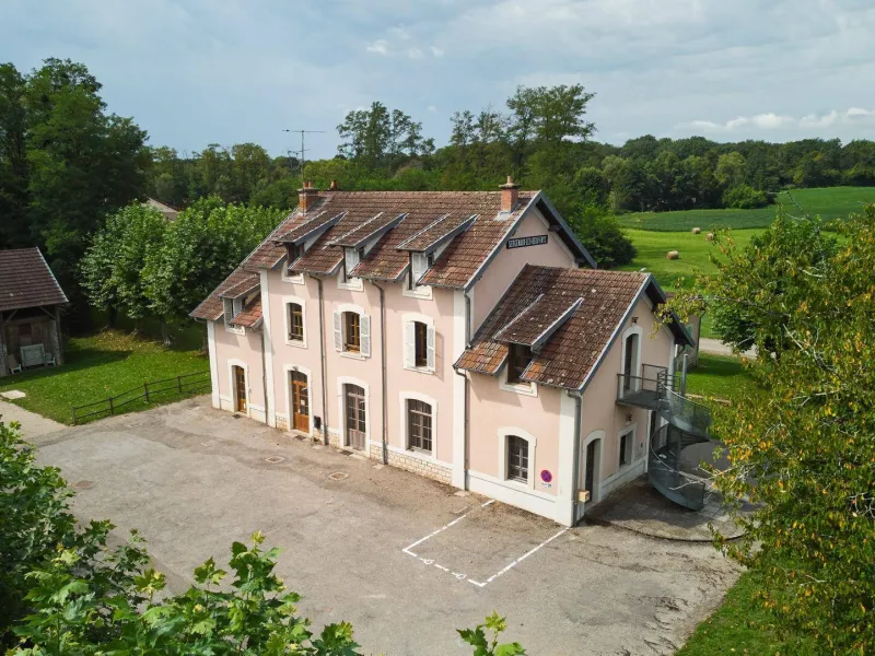 Situated in the heart of the Bresse lakes, this 36-person gîte is housed in the village's former railway station and enjoys a peaceful, leafy setting. Completely renovated, the ground floor has a large dining room, a fully-equipped kitchen and a bedroom for people with reduced mobility. Rooms with private and shared bathroom facilities are on the 1st and 2nd floors. It is also the starting point for a number of hiking, interpretation and mountain bike trails. Ideal for rest, rejuvenation and relaxation, with family or friends. Self-catering only.Localisation