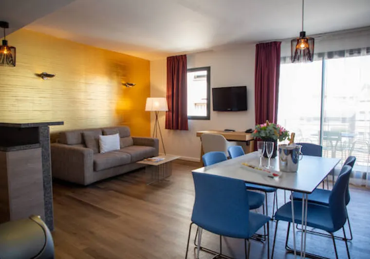 Ideally located in the city center of Toulouse, your 4 star aparthotel is near the Wilson square and Capitole square and 2 minutes walking distance from the main SNCF train station. The Adagio Toulouse Parthénon is also 15 minutes away from the airport and the Airbus Training Center. Our 99 apartments from Studio to 1 bedroom apartment for 4 persons (50m²) offer : fully equipped kitchen, separate bedroom, living room with sofabed and desk, panoramic view of Toulouse, some have balconies. Our reception team is available 24h and we have a daily cleaning service (except Sundays).Localisation