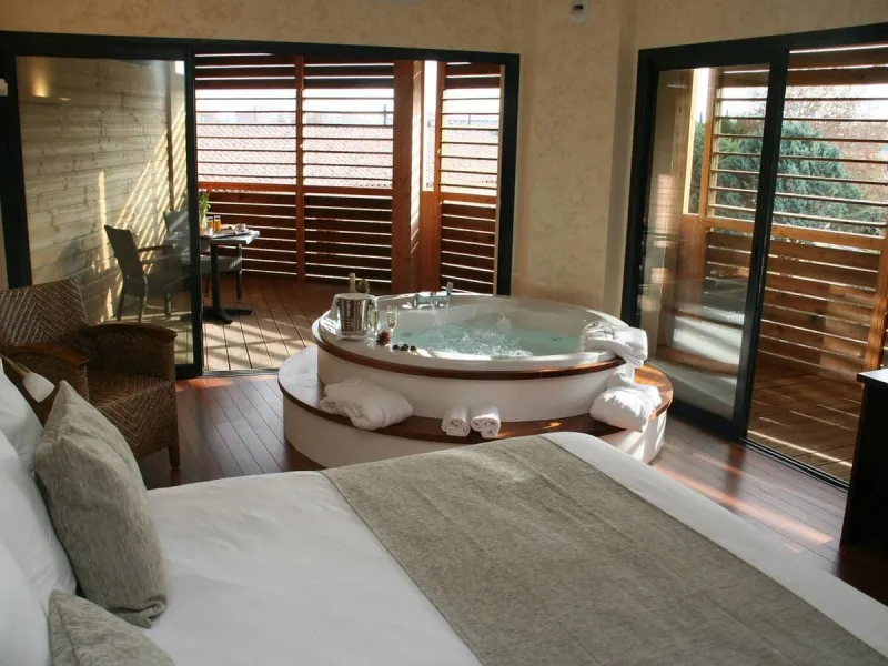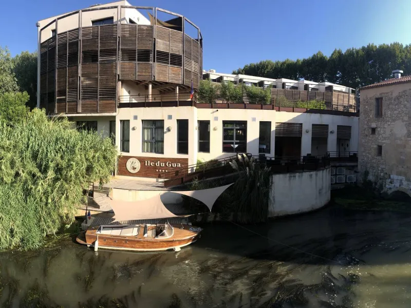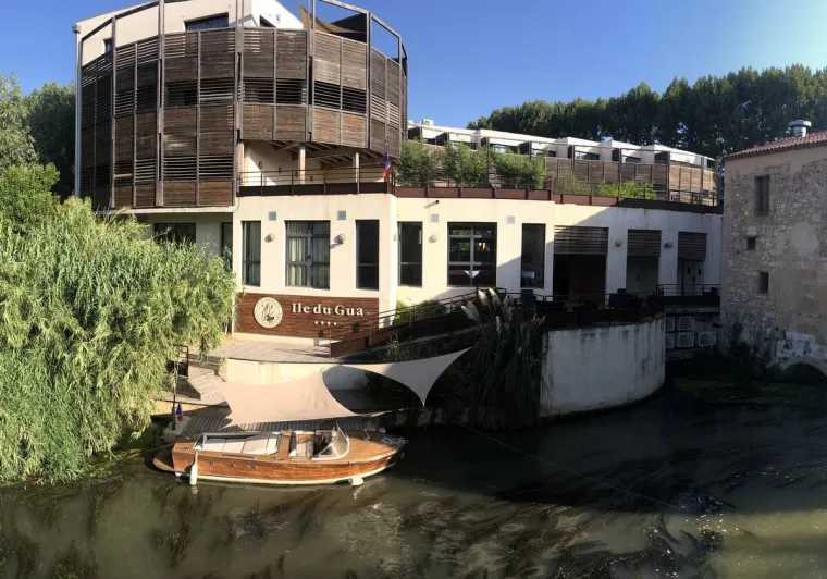 Ile du Gua Suites is on the right bank of the Canal de la Robine (a UNESCO World Heritage Site), enjoying a unique location between the canal, the lock, and medieval-themed municipal gardens or ‘jardin de curé’.Ile du Gua Suites offers 54 Suites, including 5 Prestige Suites, all equipped with a kitchenette, hot tub, and a private wooden terrace facing away from the wind, not overlooked, with views of the canal.