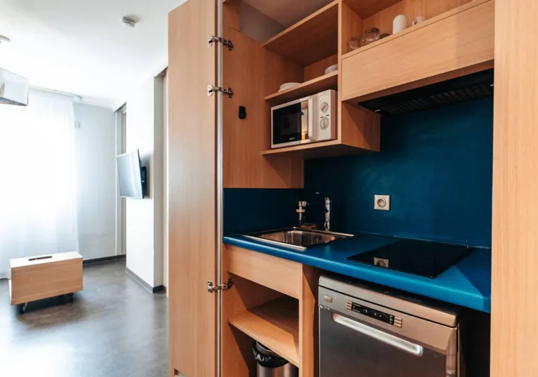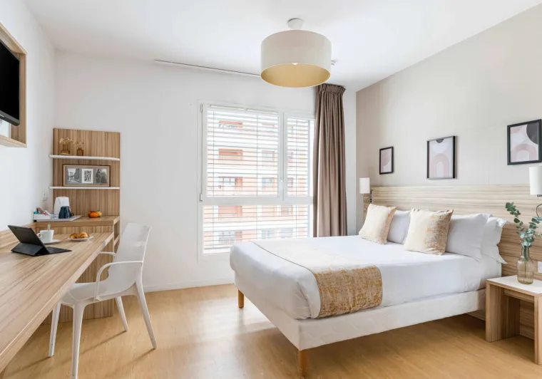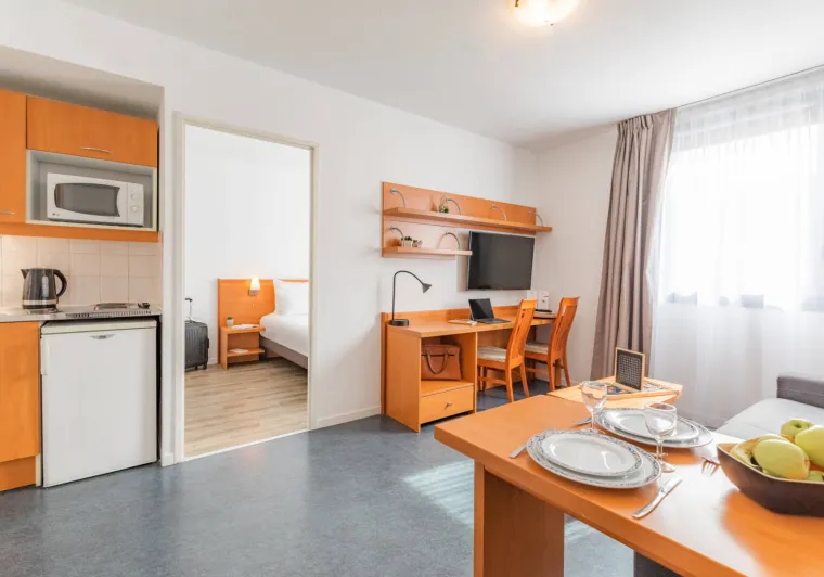 114 air-conditioned apartments are spread over 4 floors, offering a pleasant and functional living space in which to work, enjoy a meal, or recharge your batteries. Our residence is situated at the heart of a new residential area, opposite the Town Hall of Lyon's 8th district and a stone's throw from the large hospitals.Localisation