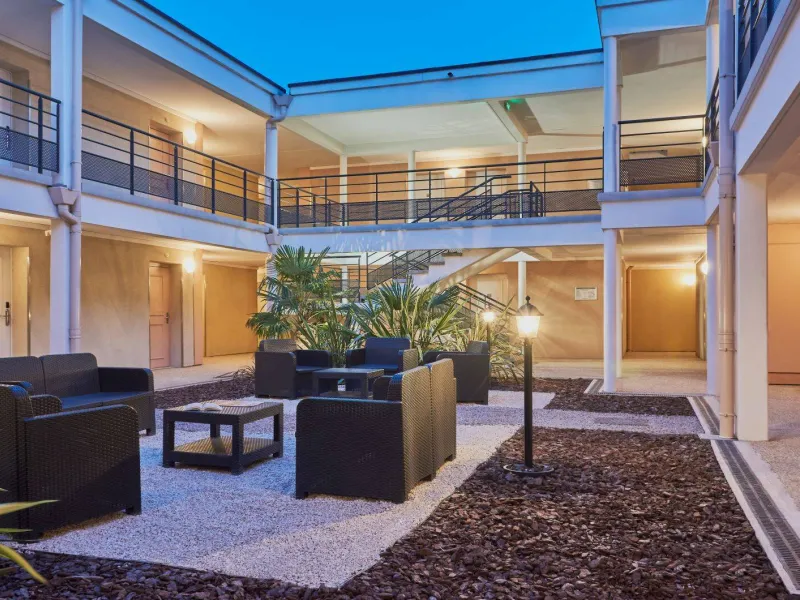 A unique 3-star concept in Seine-et-Marne, 40 minutes from Gare de Lyon on the RER D, less than an hour from the airports and equidistant from the châteaux of Fontainebleau and Vaux-le-Vicomte.On site: bar, terrace, fitness trail, indoor heated swimming pool and cardio room. Traditional French bistro restaurant and a traditional Italian restaurant