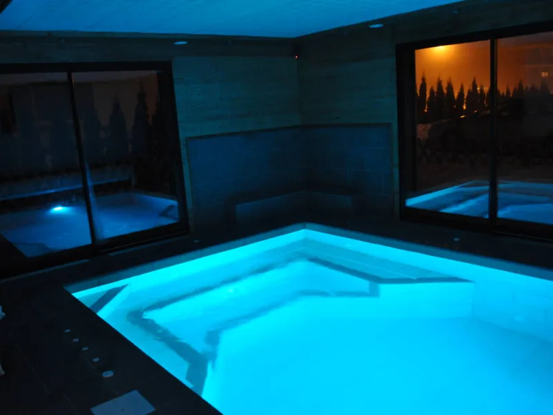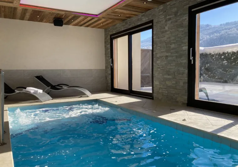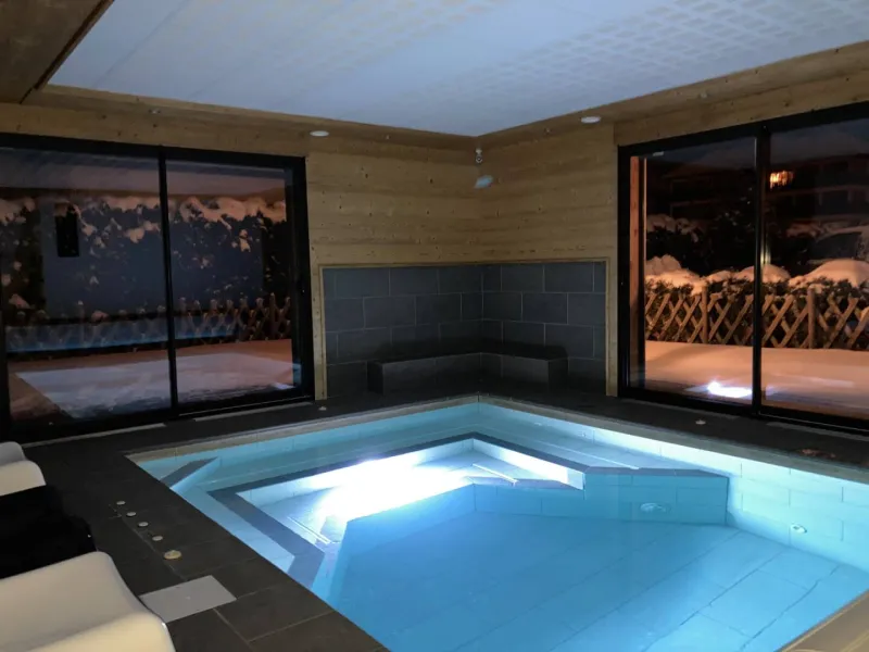 Spa featuring a 34° heated pool with Jacuzzi, hydromassage jets, chromotherapy, massage room, fitness room, steam room and sauna. Panoramic mountain views. Seminar room. Wifi internet access. Weekly and weekend stays.Localisation