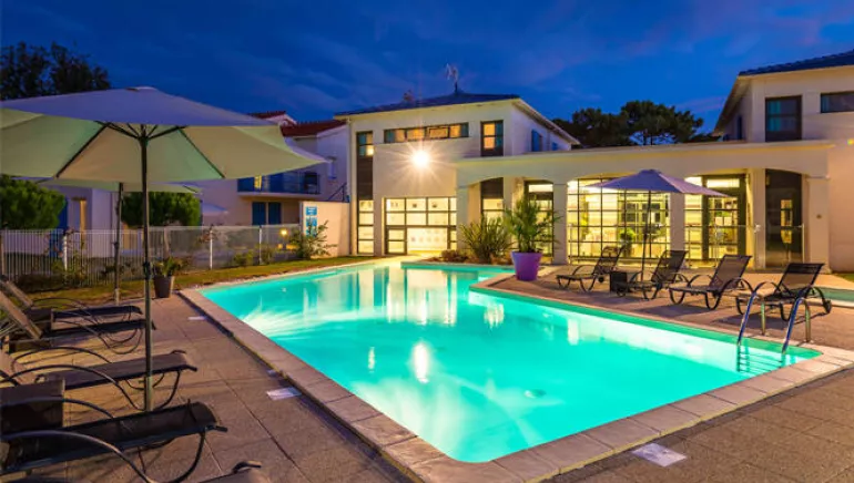 Composée de 71 appartements répartis sur 7 bâtiments d’un étage, elle vous plonge dans un cadre moderne et raffiné. Piscine chauffée.