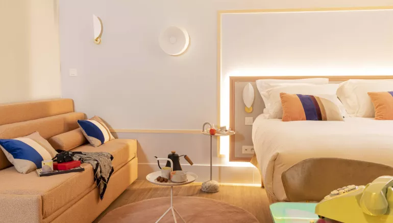pastel tones, combining an intimate atmosphere with all the comforts of a modern room, for a soothing night's sleep.