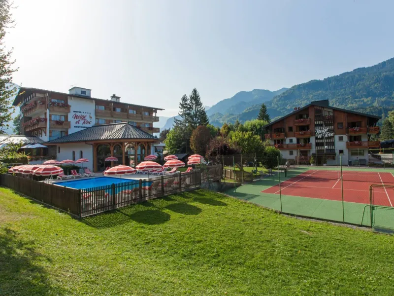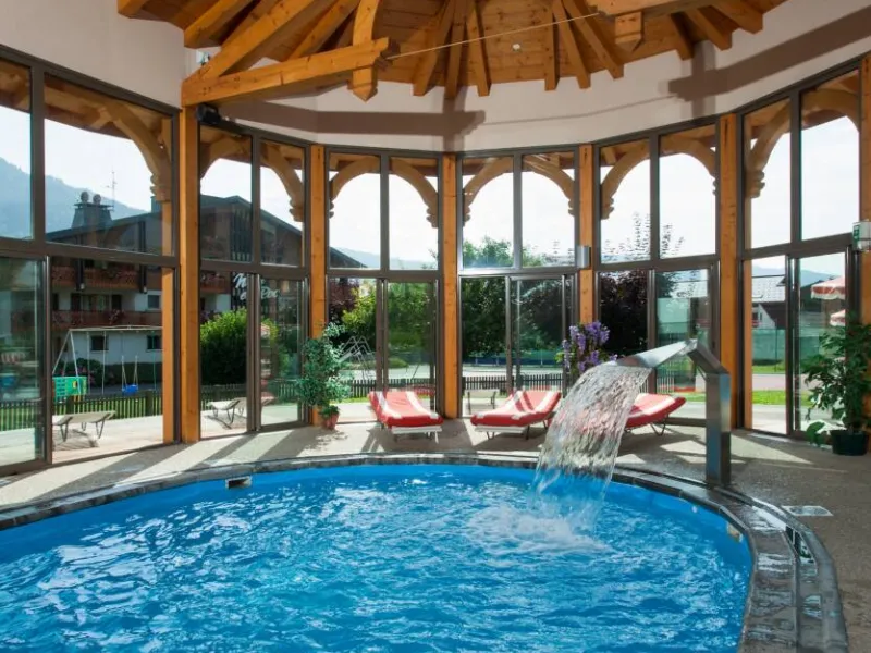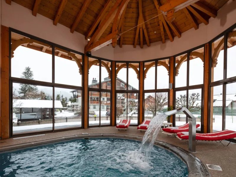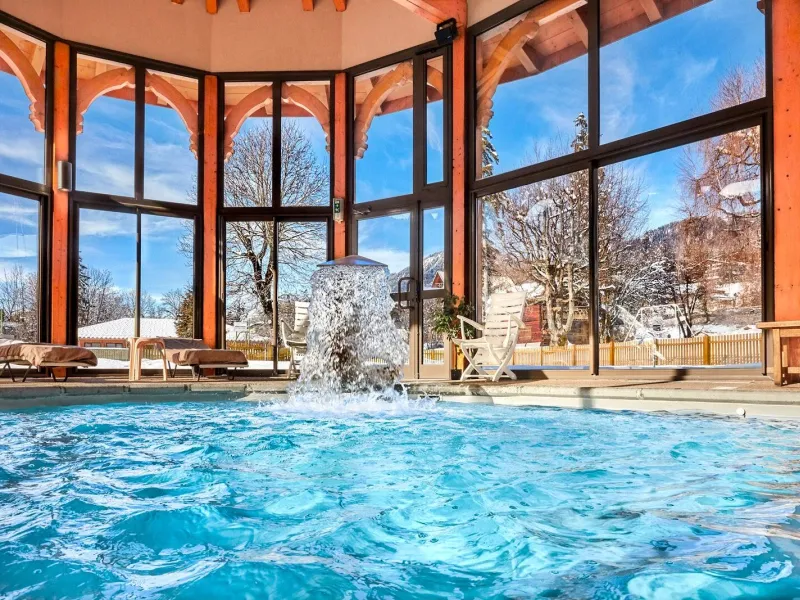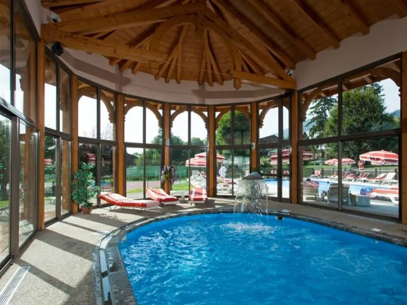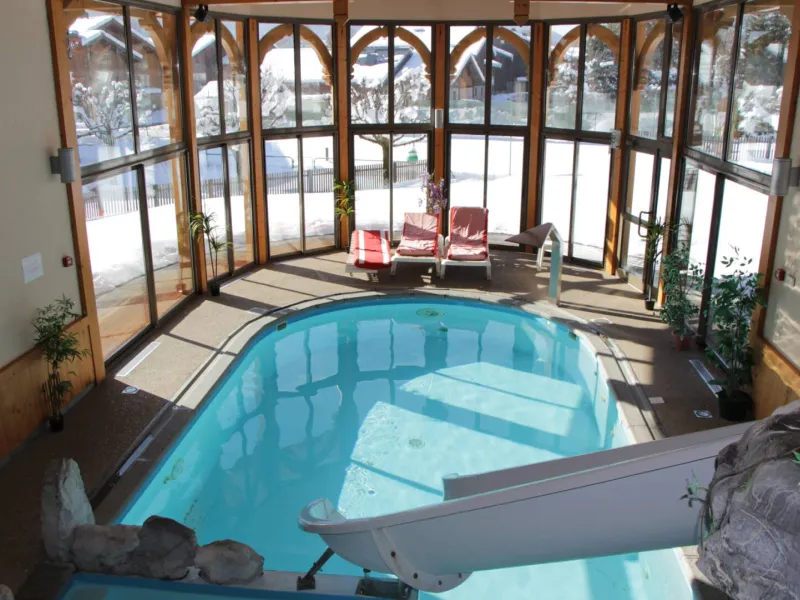 At your disposal: 2 heated pools with balneotherapy (indoor and outdoor in summer), tennis courts and pétanque (only in summer), sauna, hammam, jacuzzi, fitness room, massages on reservation (fee payable), hiking outings, children's chalet, games room, large hectare park.