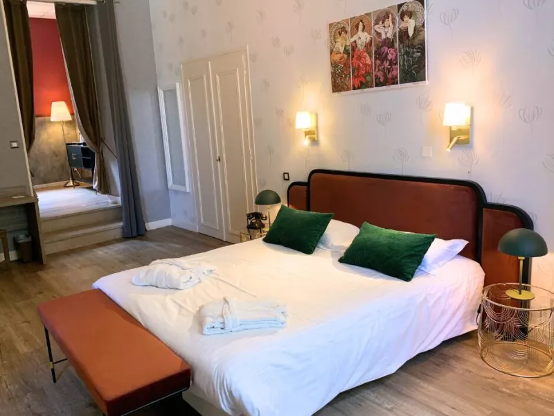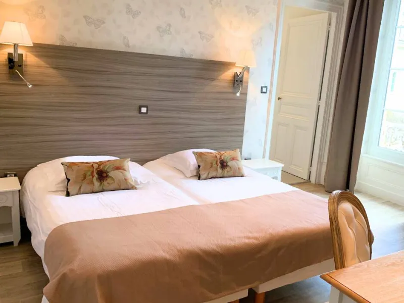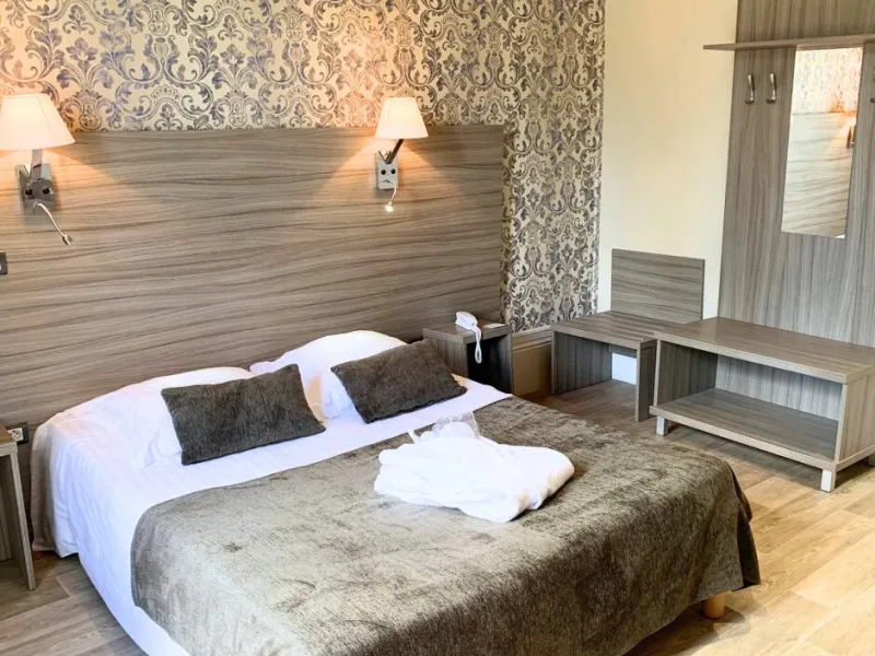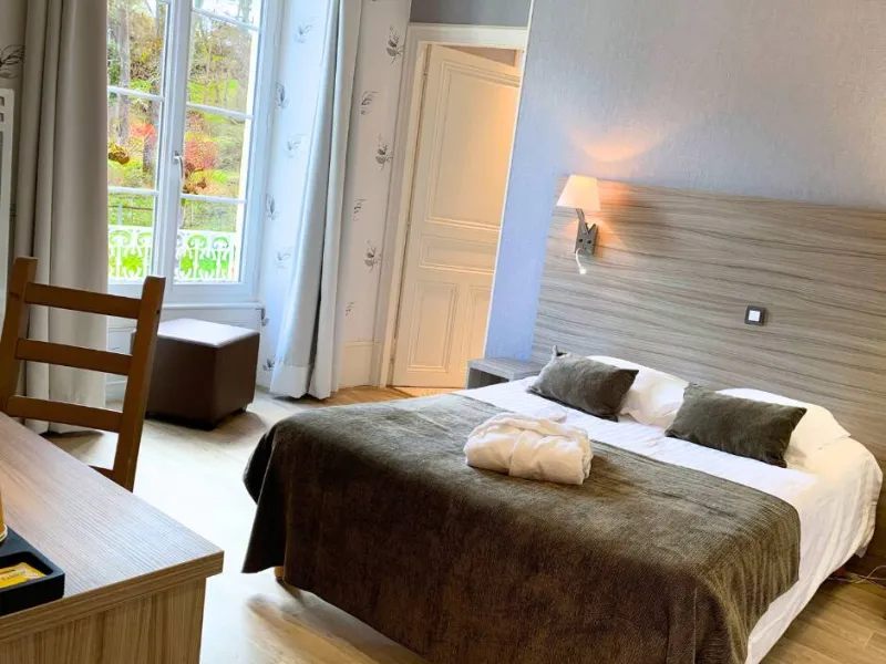 In the heart of the Parc Thermal and just a stone's throw from the medieval town of Bourbon-Lancy, the Grand Hôtel *** - LogisHotels is a calm and welcoming place, ideal for rest, relaxation and well-being, with the only thermal spa in Saône-et-Loire! Set in a former Visitation convent built in the 18th century, the hotel offers 18 stylish rooms, some of which open onto the arcades of the former cloister. Enjoy a fitness break, a wellness getaway or a stopover in our beautiful spa town. The hotel also features a restaurant serving home-cooked cuisine and regional specialities.Localisation