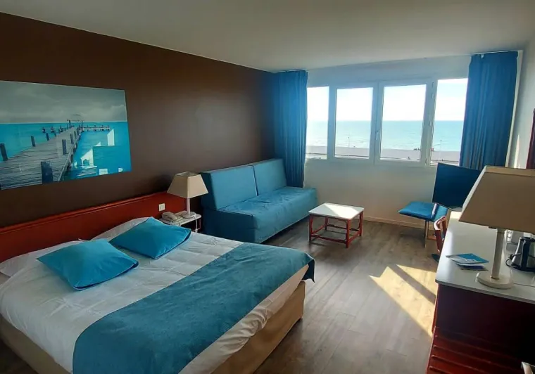 Friendly hotel located in the heart of the town by the sea, the Hotel Aguado is also close to all the shops and restaurants. It overlooks the sea and offers a beautiful panoramic view. Our charming three-star hotel, fully renovated in 2016, offers both a wide maritime panoramic view and an intimate, tranquil atmosphere in a refined setting. At the Hotel Aguado, all the rooms are different but provide the same level of comfort. We have welcomed our customers as family members for 3 generations, all coming to Dieppe in the same way as people used to come for sea bathing in the days when time could stand still.Localisation