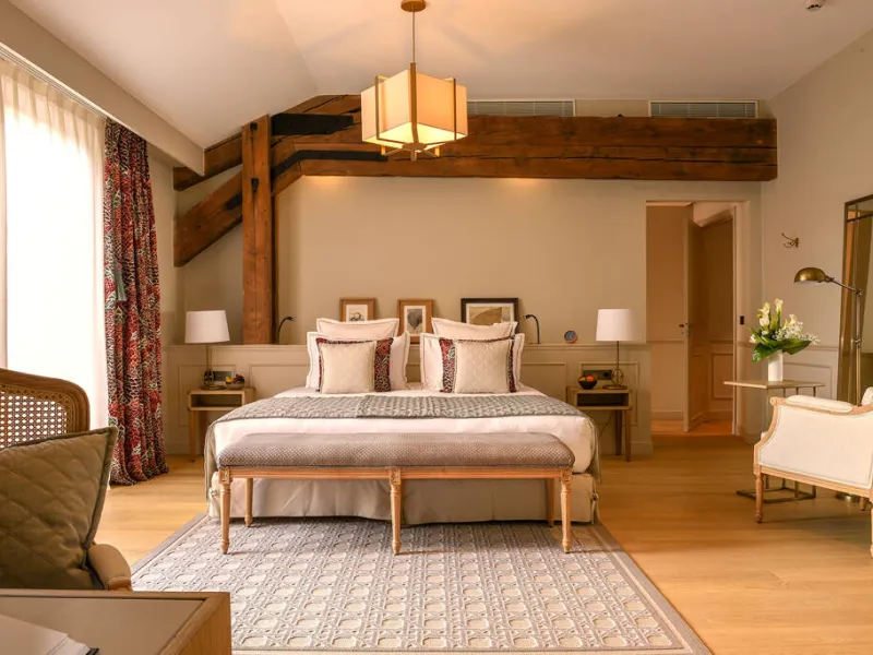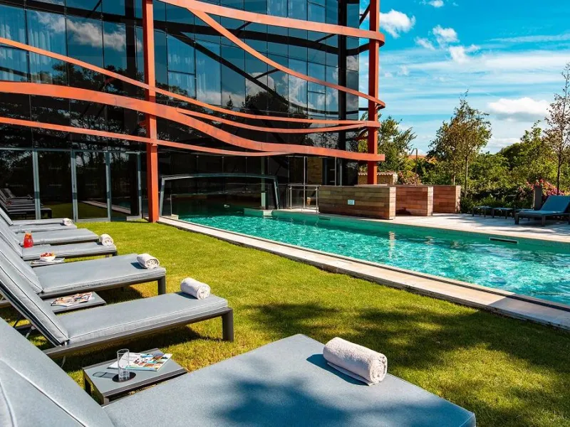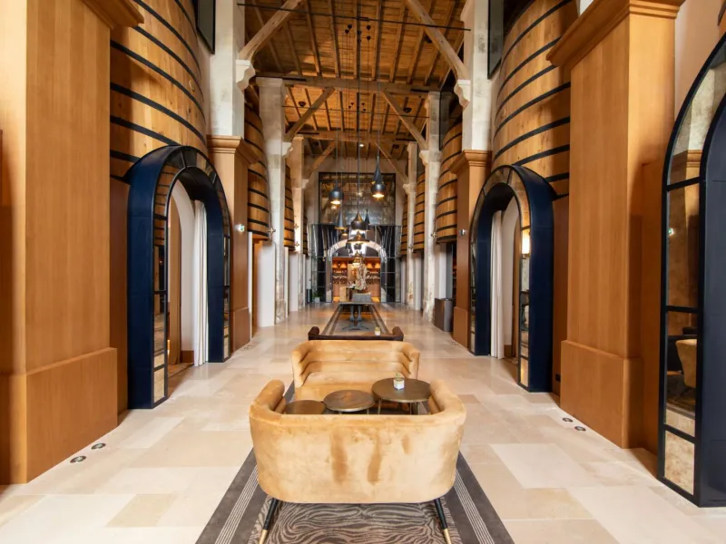 Stemming from the impressive industrial heritage of Jean-Gabriel Monnet's former wine cellars, built in the 19th century, the Hôtel Chais Monnet & Spa embodies a new way of experiencing luxury in Cognac. Nestled between the charm of the town and the gentle vineyards, this five-star establishment stands out for its unusual architecture, a bold fusion of historic structures and contemporary design.The hotel offers 92 rooms and suites, the Michelin-starred restaurant Les Foudres, the contemporary brasserie La Distillerie, Bar 1838 and its rooftop terrace, the Monnet art gallery, as well as a spa and wellness area, fitness room, hammam, sauna, jacuzzi, and indoor and outdoor swimming pools.
