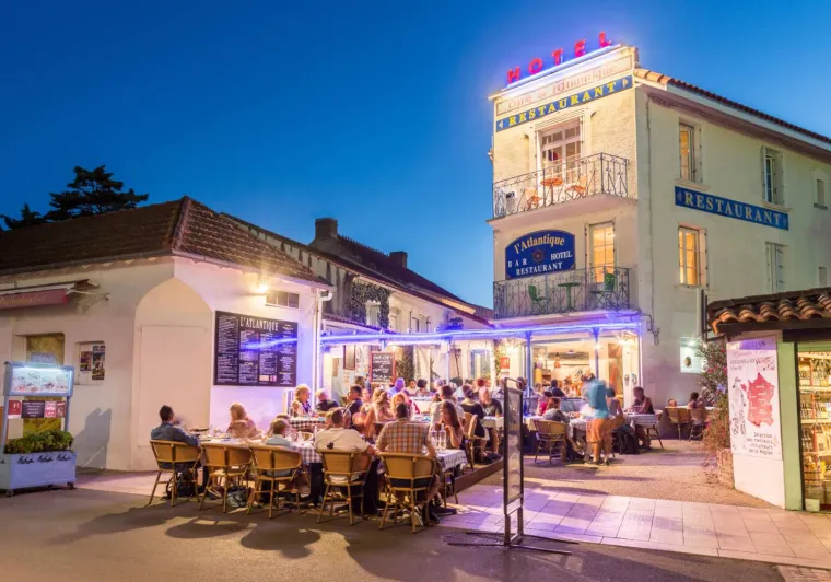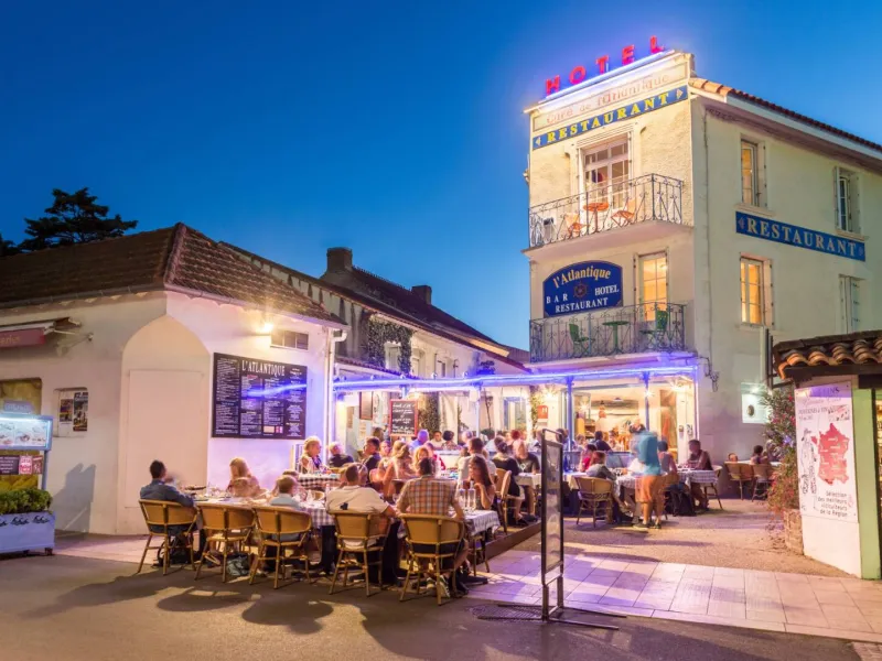 In the pedestrianised town centre, 300 m from the central beach and all services and leisure facilities! This typical - but renovated - 1920s hotel-restaurant is listed in various guides, including LE GUIDE DU ROUTARD, LONELY PLANET, LE PETIT FUTÉ.->The restaurant offers carefully prepared, home-cooked cuisine. Dishes and menus featuring fish, seafood, meat and salads... all at very reasonable prices (€13.80 to €33.60 for the menus, menu renewed twice a year, new dishes on the slate almost every day).