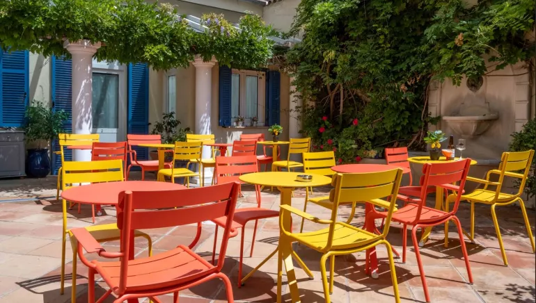 The flowery and shady patio welcomes you for a delicious buffet breakfast or a nice aperitif after a day of shopping, excursions or simply the beach (only a few steps away!).