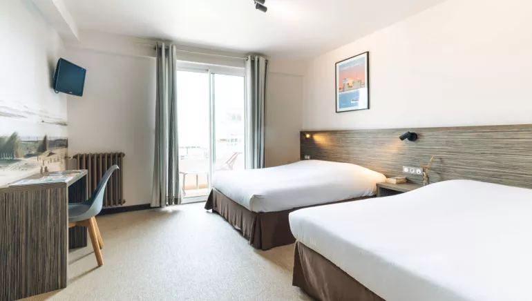 L’hôtel est idéalement situé à quelques mètres de la plage. Nous vous accueillons dans des chambres doubles, triples ou familles confortables et lumineuses, dont certaines avec balcons.