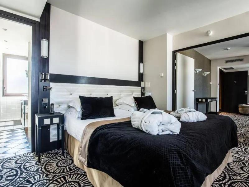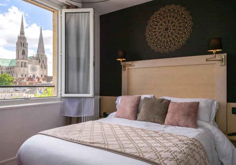 The bus stop and free shuttle buses in front of the hotel provide quick and easy access to all the Chartres tourist, cultural, sports and economic attractions. Occupying a 1930s building, this modern hotel offers a wide range of top-of-the-range services to satisfy both business and leisure travellers. Relax in one of the 35 rooms and suites, all of which are air-conditioned, soundproofed and equipped with free Wi-Fi internet access. Their bathroom is equipped with a shower, toilet, magnifying mirror and hairdryer, as well as a bathrobe with slippers for the suites.Localisation