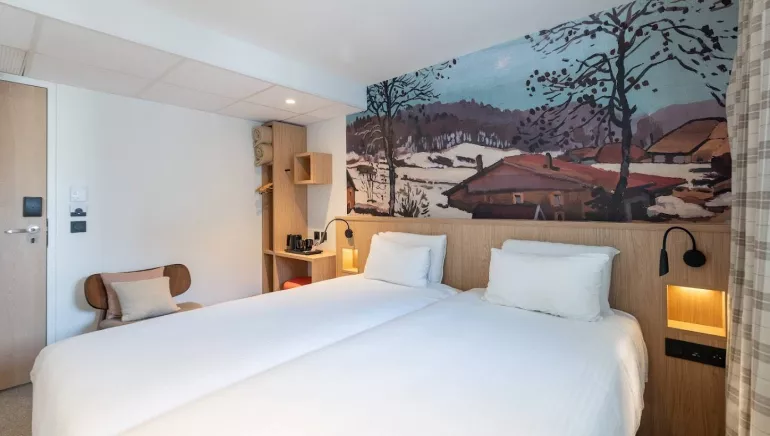The 3-star Kyriad Montbéliard Sochaux is ideally located to the west of Montbéliard, close to the PSA factory and the Bonal stadium, and 15 minutes from the Belfort-Montbéliard TGV station. Accessible via the A36 motorway and with free parking, it is ideal for both business trips and family getaways.