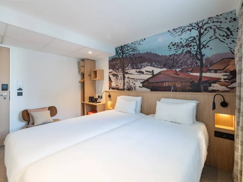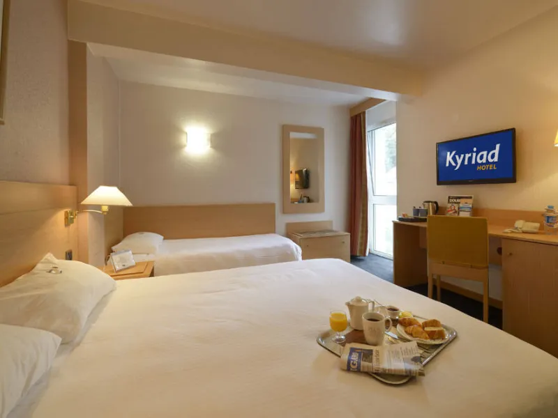 The 3-star Kyriad Montbéliard Sochaux is ideally located to the west of Montbéliard, close to the PSA factory and the Bonal stadium, and 15 minutes from the Belfort-Montbéliard TGV station. Accessible via the A36 motorway and with free parking, it is ideal for both business trips and family getaways.The hotel, currently undergoing renovation work, remains open and welcomes you in a modern and functional setting. The 66 spacious rooms combine comfort and relaxation, with en suite facilities, TV, free WiFi and air conditioning. Pets are welcome and reception is open 24 hours a day. The hotel also has facilities for disabled guests and charging points for electric vehicles.
