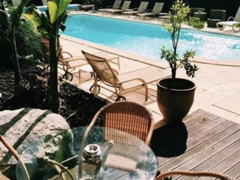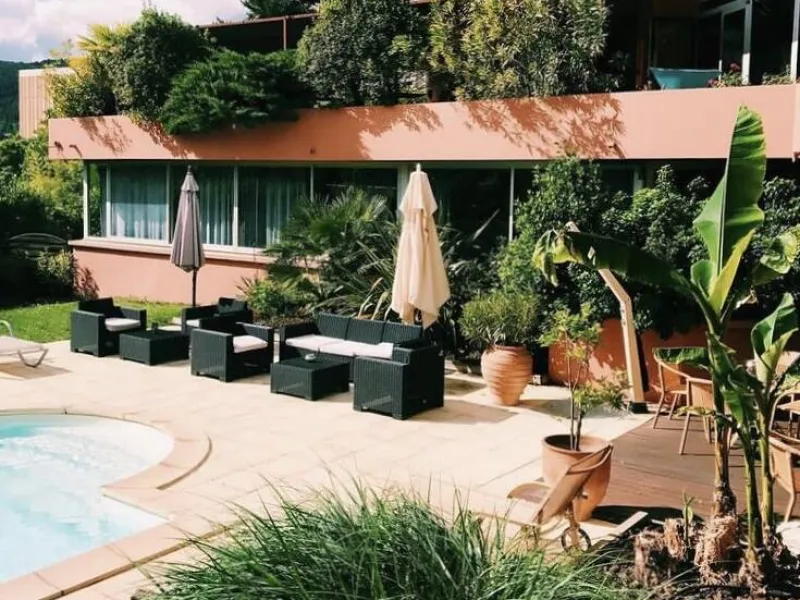 Couleurs d'ocre, de sable et de feu, parfums mêlés de cannelle, d'orange et d'encens, le lieu invite au voyage et à la détente dans un cadre chaleureux et verdoyant.Espace coworking à disposition (en location).