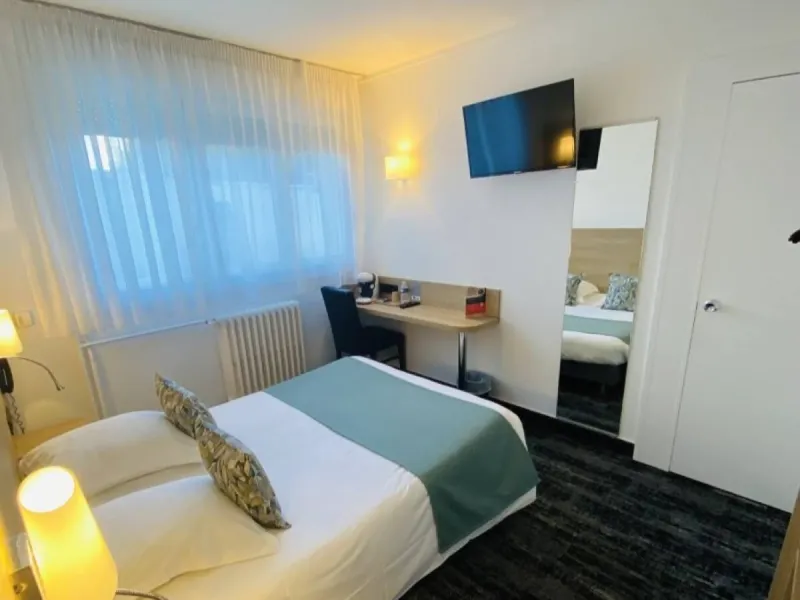 Friendly hotel in the city center, close to the harbor, restaurants, the "Cité de la Mer" and the ferry terminal. Ideal for your holidays or your relaxing weekends in Normandy, in the Channel, close to the seafront. The hotel Le Louvre has 40 comfortable rooms, all equipped with flat screen LED TV (TNT, Canal + and Canal satellite). Breakfast buffet. Free WIFI. 24h / 24h (night watchman). Closed parking (reservation: 6 €) with direct access to the reception. Elevator.Localisation