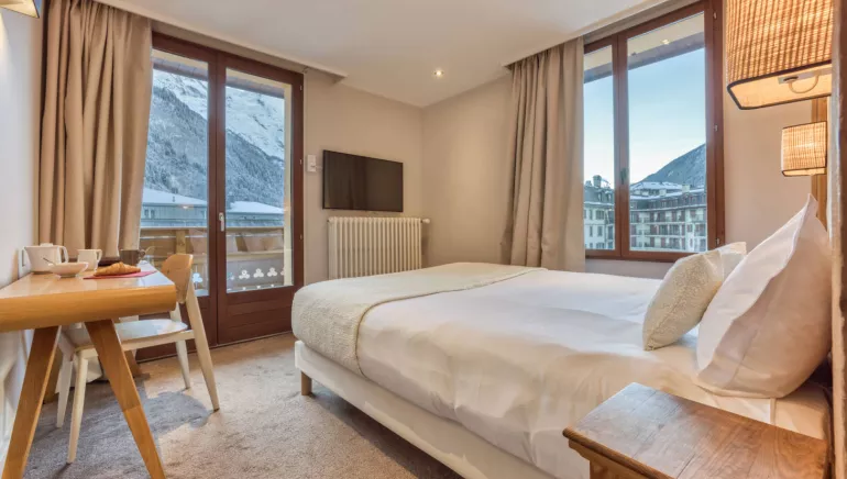 In winter, enjoy a moment of contemplation with the majestic Mont Blanc as a backdrop and the crackling fire in the bar’s fireplace. In summer, unwind in the garden by the river or relax by the pool while taking in the breathtaking panorama.