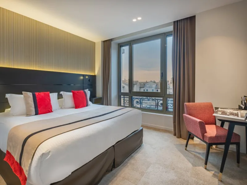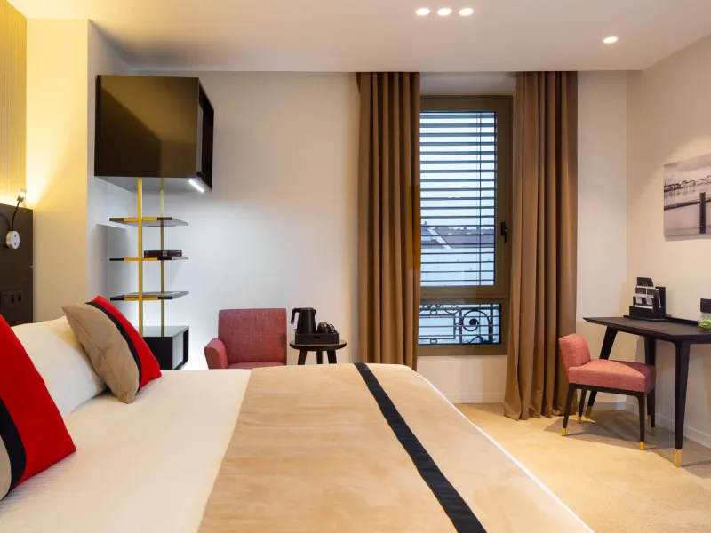 The hotel, with 69 rooms and suites, is located in the very centre of Mâcon, in a superb building erected over 100 years ago.Its rooftop SKYBAR 360 offers a unique view of Mâcon, the Saône and Mont-Blanc.