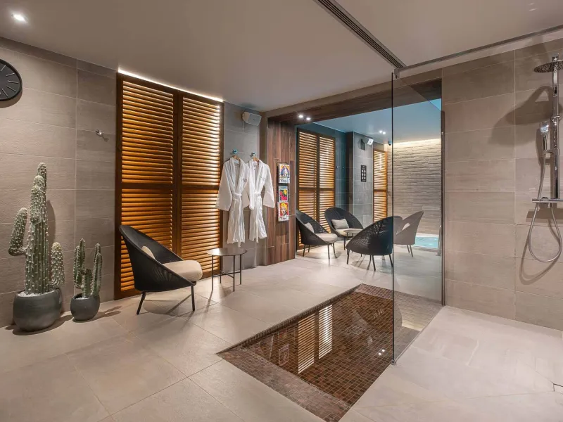 The wellness area, with its two treatment rooms, herbal tea room, whirlpool, heated relaxation pool, hammam and sauna, will provide you with a memorable moment of relaxation.