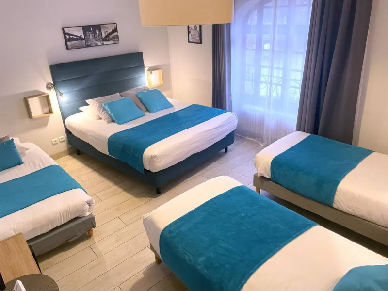 Free private parking and garage. At night, a code entry (which will be given to you when you book) will allow you to arrive whenever you like... you're almost at home... After a good night's sleep in the peace and quiet, you can enjoy an all-you-can-eat sweet and savoury buffet breakfast. Restaurant and terrace for up to 100 people.