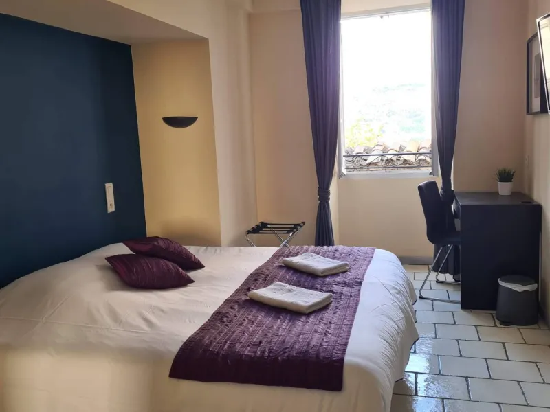 Rooms facing Mont Ventoux offer stunning views of the lavender fields in bloom during July and August, as well as of Mont Ventoux itself. The hotel includes a room suitable for guests with reduced mobility. You'll enjoy both tranquility and a prime location in the heart of the village, with breathtaking views of Mont Ventoux. The establishment also provides a secure parking area for bicycles/motorcycles. Just a stone's throw away, the restaurant offers homemade cuisine accompanied by local wines. One of the restaurant's terraces is situated in a enclosed garden where sun loungers allow you to appreciate the superb view over the plain of Sault.Localisation