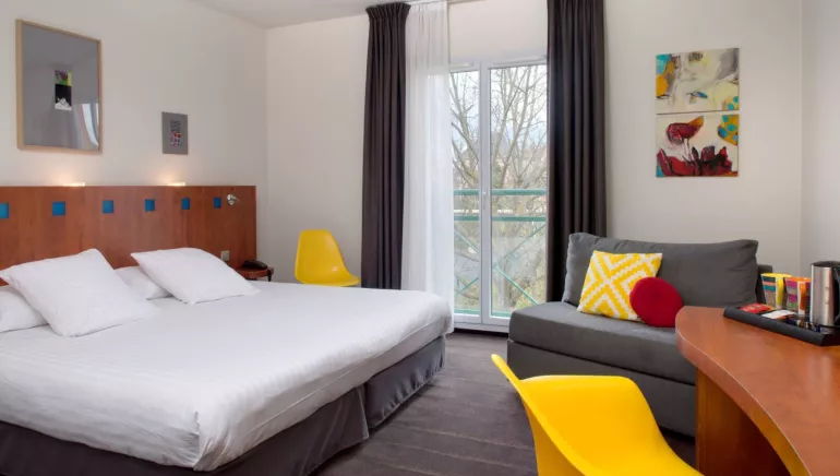 Our 3 star gourmet family run Hôtel offers you stylish, thoughtfully-designed and luxurious 54 rooms (king size beds, air-conditioned, heated outdoor swimming pool). The hotel is located in the city centre and can be reached directly from the A75 motorway.