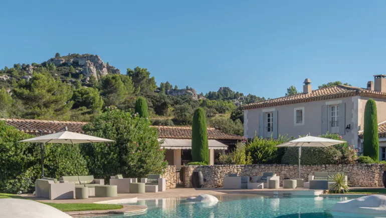 At the heart of an olive grove, a pleasant Provençal house with discreet and refined decor. A complete change of scenery with an amazing landscaped pool, rock garden, submerged beach and integrated spa. Gourmet salads and grilled lunch are served around the pool for guests. Awarded the "Hotels au natural" and "Hosts of the Regional Natural Park of the Alpilles" labels, the Mas de l'Oulivié stands out for its eco-responsible practices and actions in favour of environmental protection.