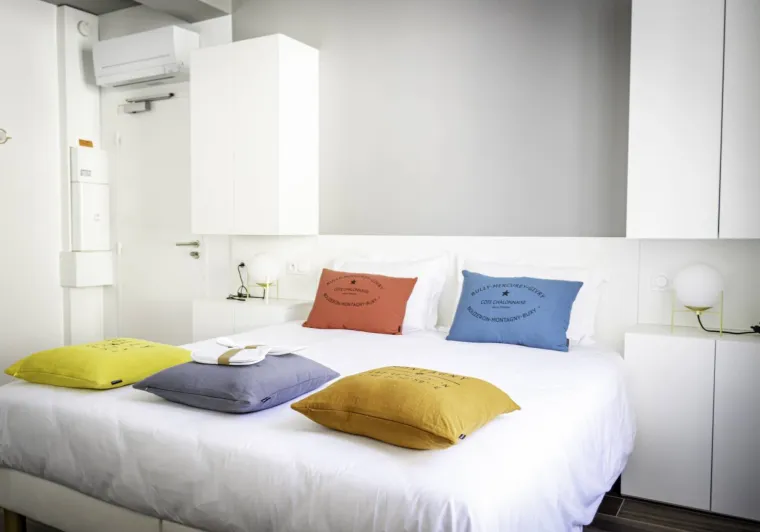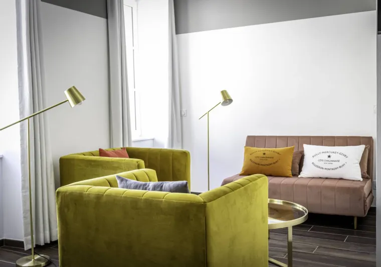 In the heart of Givry, in a completely renovated building, come and spend some quality time in this 39 m2 furnished studio, offering a high level of comfort, allowing you to live in complete freedom and autonomy thanks to its fully equipped kitchen (refrigerator, dishwasher, hotplates, oven, espresso machine...). The XXL bedding (180x200), the bathroom with toilet and Italian shower, the reversible air conditioning, the general atmosphere and many other quality services will convince you to extend your stay.Many activities await you, such as bike rides on the greenway located a few hundred meters away, walks in the vineyards, tastings of Burgundy wines, accrobranche sessions for the most intrepid, and visits to the rich regional heritage.
