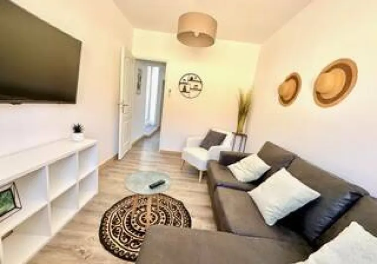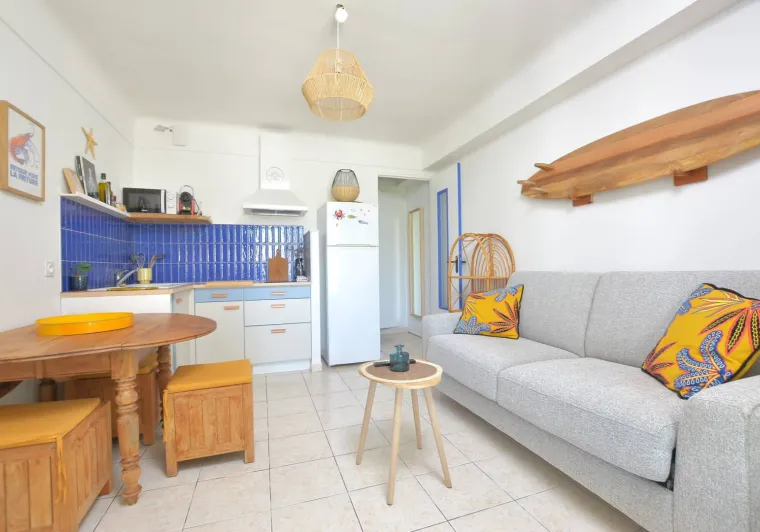 parking privé, en 1ère ligne à 10 mètres de la plage, à côté de la voie verte, 2 chambres, 5 personnes, cuisine équipée, salle d'eau avec douche et wc séparés, grande terrasse (30 m2) sans vis à vis, parc à vélos. Idéal pour famille ou 2 couples + 1 enfant.Posez votre voiture ou vos vélos et déplacez-vous à pied : à 400 mètres, pharmacie, poste, supérette, cinéma, restaurants.