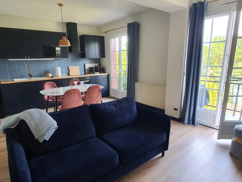 Cet appartement a été refait à neuf fin 2021 dans un style ‘rétro’ revisité. La décoration et le mobilier ont été choisis par Hélène Bastiand (décoratrice d’intérieur) dont l’objectif était de révéler un intérieur chaleureux grâce à un doux mélange de tons. Depuis vos portes-fenêtres, vous aurez plaisir à observer le vol des oiseaux, la Seine et son trafic fluvial..Localisation