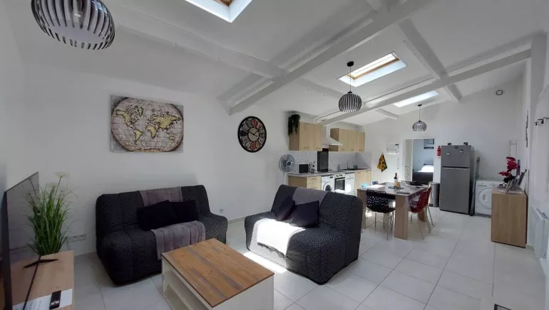 Béatrice and Bernard welcome you to this pretty flat, completely renovated in 2023. It comprises a large, bright living room with a highly functional open-plan kitchen, and 2 bedrooms (1 with 2 single beds (90cm) and 1 with a single bed (160cm x 200cm)). The residence is secure, and the flat has covered parking just outside the entrance, so you can leave your car in the shade.