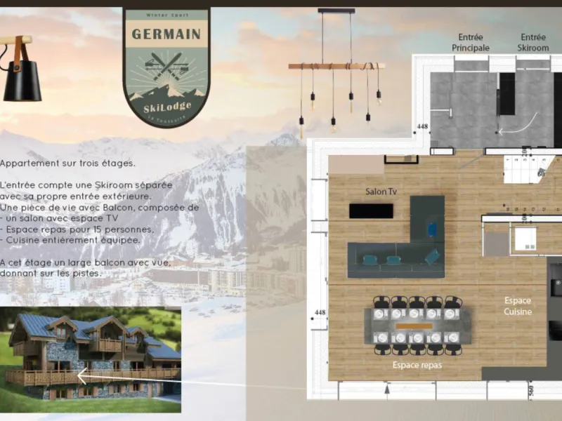 Beautiful flat on 3 floors with skis on.The entrance has a separate ski room with its own outside entrance.