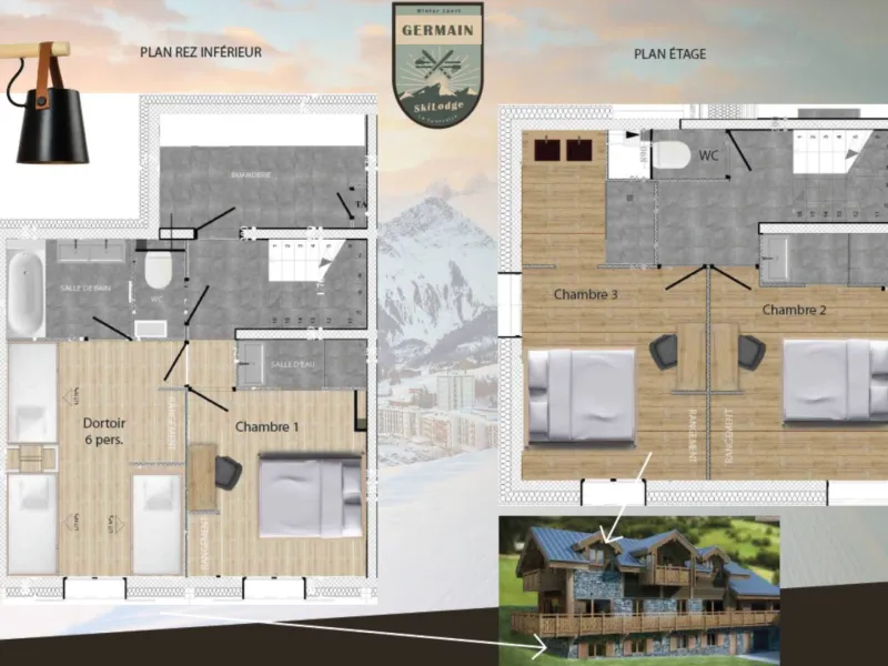 and a dormitory room with 6 bunk beds 80x190cm; 4 bathrooms and 2 separate toilets