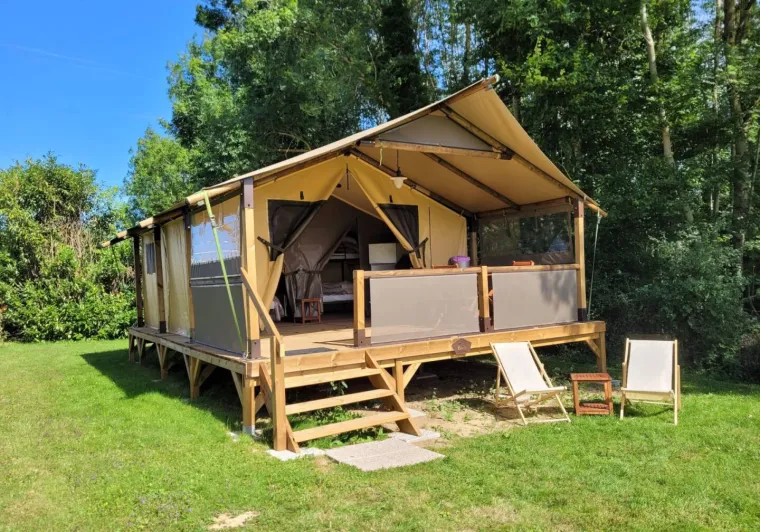 Pleasant campsite close the river.1 canvas bungalow 4 people and 4 wooden barrels equipped and comfortable. Ideal short stay, for families.