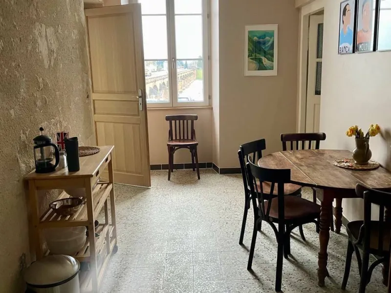 We offer three flats on the 1st and 2nd floor above the café, suitable for groups of 1 to 9 people, each with its own bathroom / WC and a fully equipped kitchenette.Very central location with good soundproofing and a magnificent view of the Loire bridge. Bicycle room, small tools available.