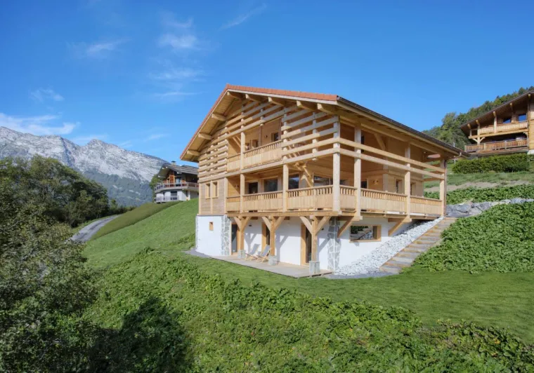 Charm, luxury and comfort characterize this prestige serviced with quality materials in a resolutely modern style chalet. The Caramel chalet consists of 6 bedrooms (2 or 3 people) located on the ground floor or on the 2nd floor, with, for each: private bathroom (shower or bathtub), Tv. All beds are twin, and dimension 90x200cm. 1st: kitchen open onto a spacious living arranged around a magnificent staircase in wrought iron: dining area, large sofa, wood burning stove, audio system wireless. Wooden terrace facing the mountains, unopposed with furniture and barbecue. Private spa 6 places. Indoor pool heated to 28°C (common) with swimming counter-current and hydromassage. On the ground floor, large common garage (4 cars in total), skiroom and dancefloor/home theater room. Everything is included: sheets, towels and end of stay cleaning. Wifi Internet. Center of Manigod 700m (small shops), skiing at la Croix Fry to 6km (connected to La Clusaz). Thônes 7km, and town of Annecy in 40 minutes.Localisation