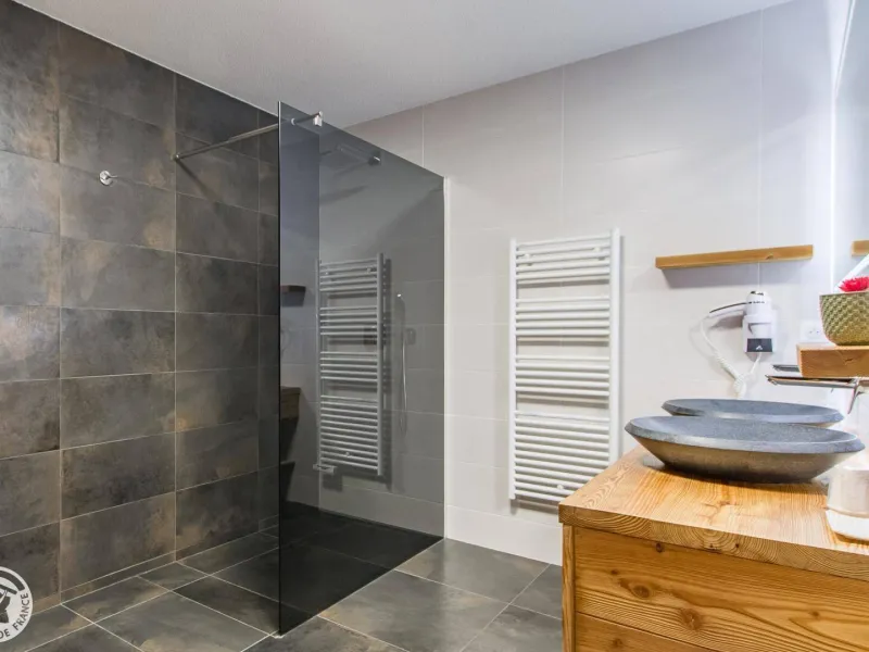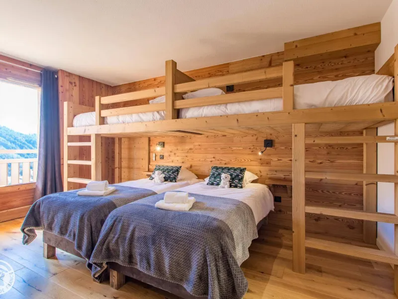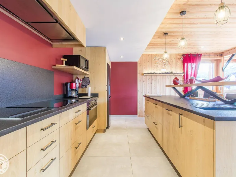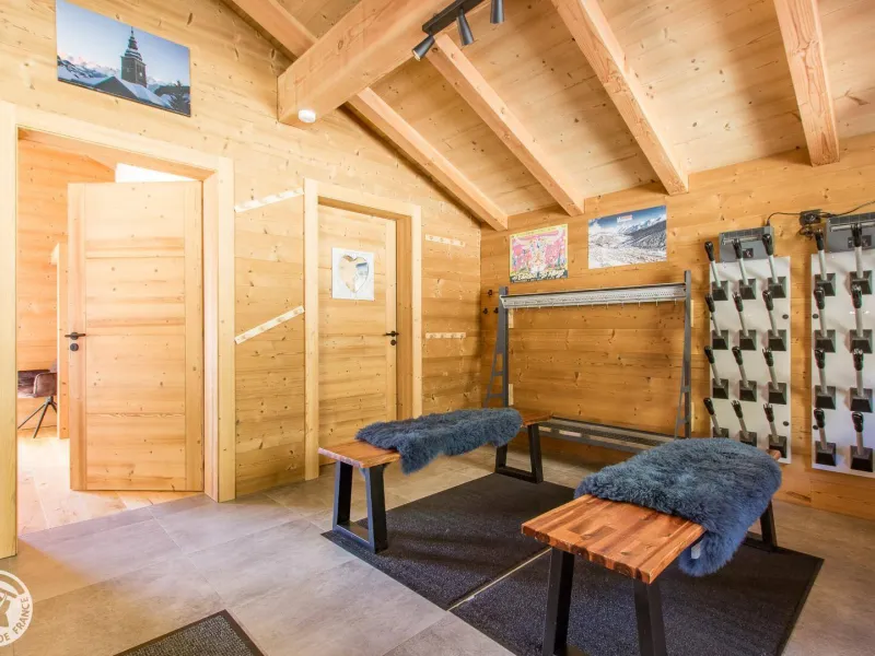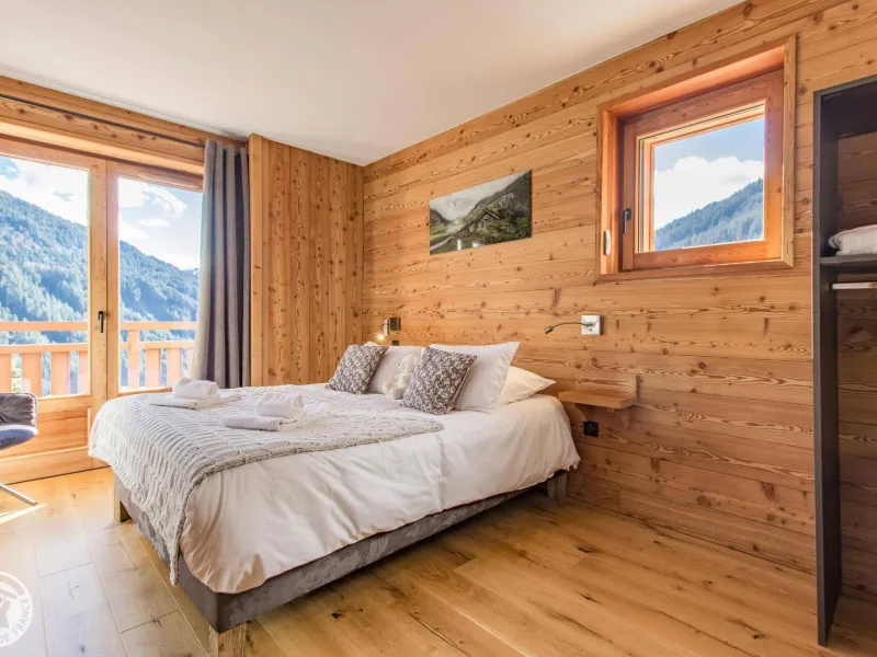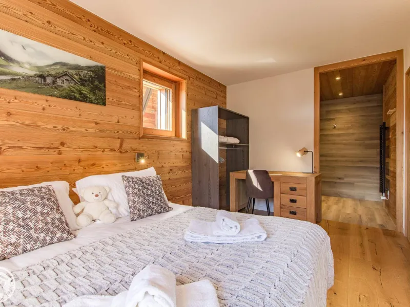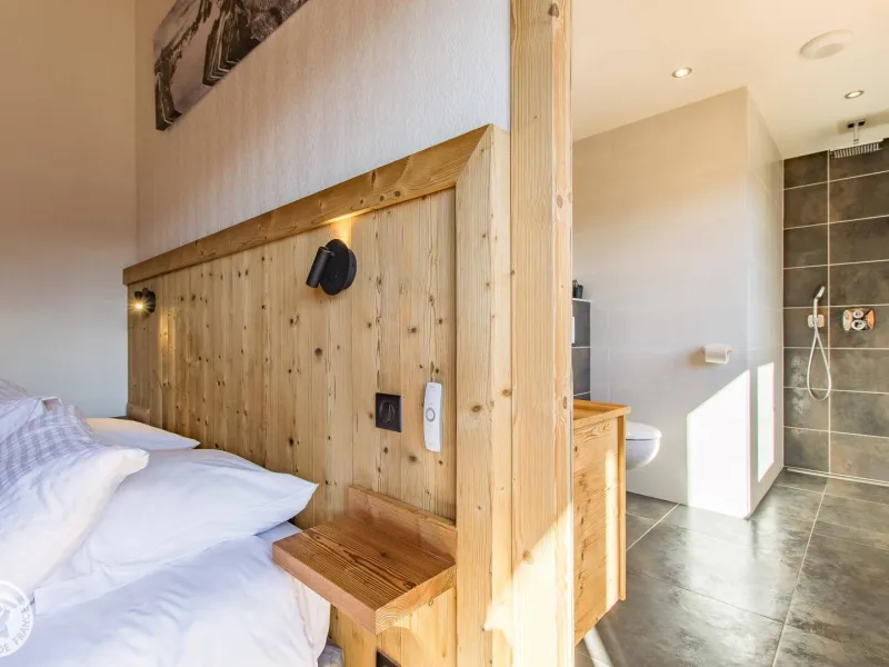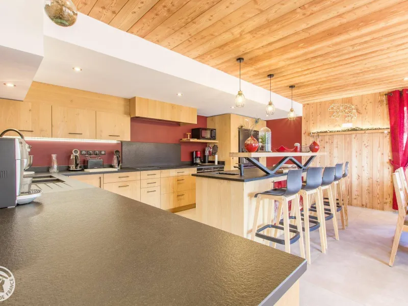 Magnificent independent chalet (190m²) arranged on 3 levels. You will be welcomed by the owner who lives in the neighboring chalet. Entrance via the top floor / ground floor (parking level): large double garage of 36m² with laundry area (washing machine and dryer), entrance hall / skiroom with shoe dryer. Bedroom 1 (1 bed 160x200cm, shower room/wc).Lower level: equipped kitchen open to the living room: large dining table, wine cellar, corner sofa, television, Bluetooth equipment, wood stove, darts board... bay window giving access to the balcony with the garden table . Bedroom 2 (1 bed 160x200cm, bathroom), separate toilet.