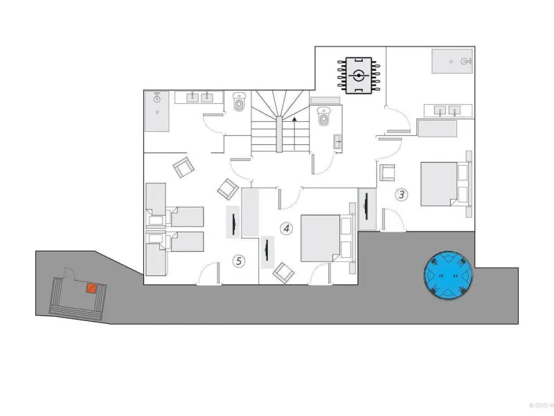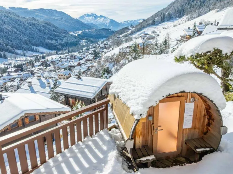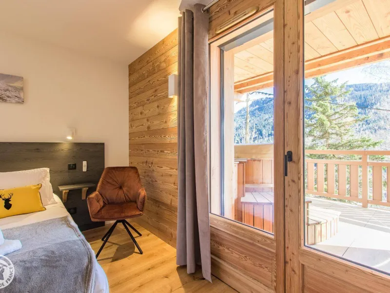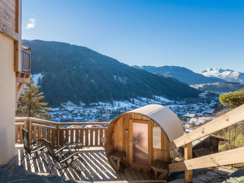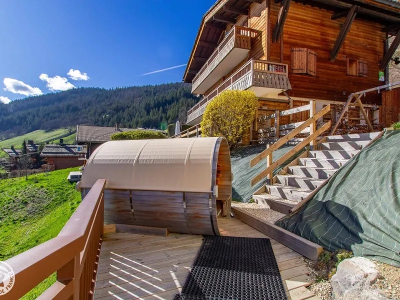Spa and sauna reserved for the chalet on the balcony and terrace. Swing. Parking in the parking lot in front of the chalet or in the double garage.