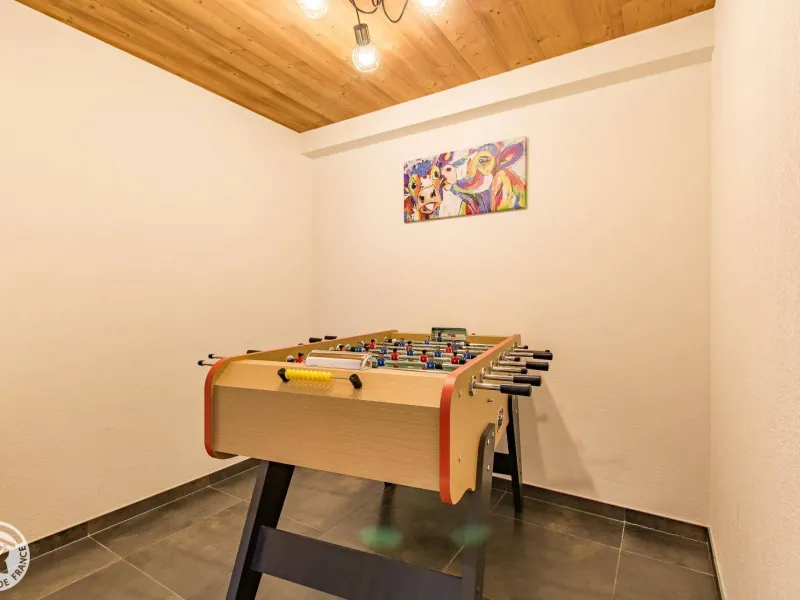 On the lower level, 3 other bedrooms: bedroom 3 for 4 people (2 90x200cm beds that can be joined together and 2 90x200cm high beds, shower room/wc), bedroom 4 (1 160x200cm bed), bedroom 5 (1 160x200cm bed), bathroom water, separate toilet. Baby foot. Connected television (no tnt channels - only access to applications) in all rooms.