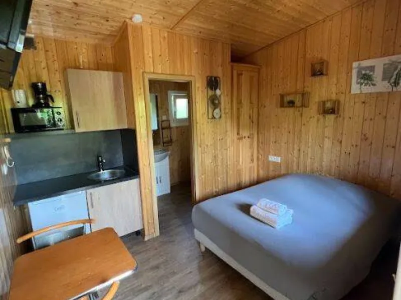 Looking for a relaxing getaway between nature and comfort? The Motel room at La Ferme des Épinettes campsite in Saint-Romain-de-Jalionas combines the warm atmosphere of a small chalet with the services of a modern hotel.Situated in a quiet, leafy setting, right next to the ViaRhôna, this accommodation is ideal for couples, cyclists or travellers just passing through.