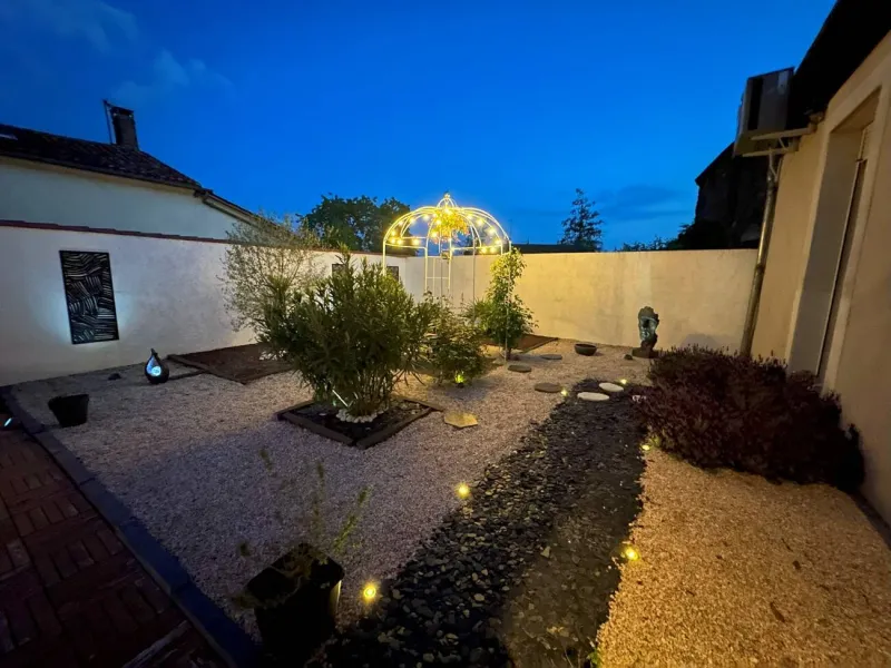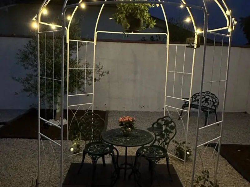 - A landscaped garden with lounge and gazebo.