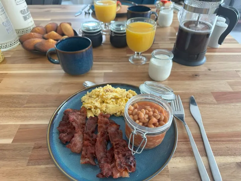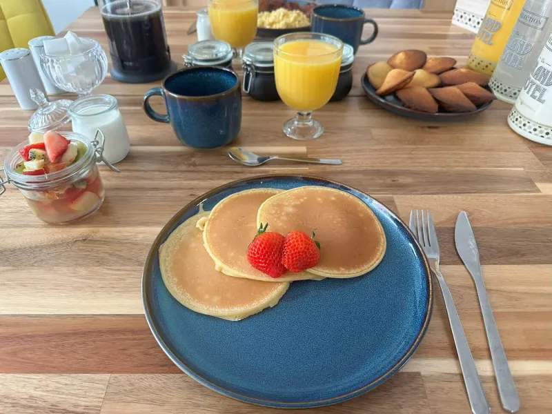 Breakfast is served in the dining room with its large table, or in season in the garden.