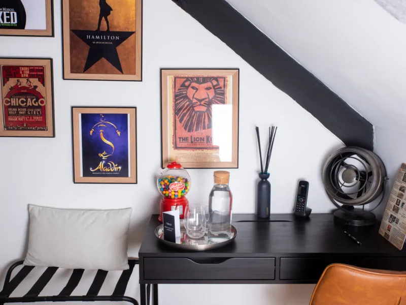 Antique furniture, as is or restyled to suit the mood of the room, attention to detail, quality bedding, branded bathroom linen, local soaps and shower gels from Maison Body Nature.