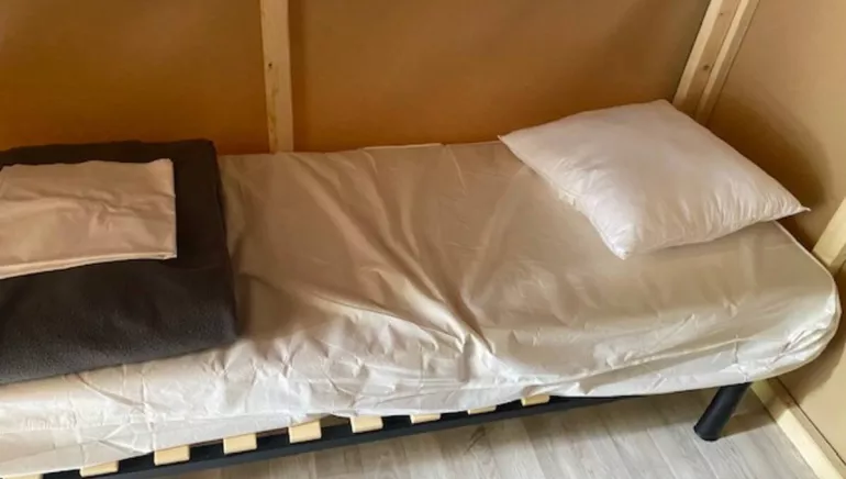 Sleep in an unusual accommodation at Camping des Rochers des Parcs. The cyclo-tent is a half-wood/half-tile tent structure on a floor with 2 single beds (also available in a single model) and with electricity (European plugs). The advantage for cyclists is that bikes can be stored in the back of the hut in a bike box.