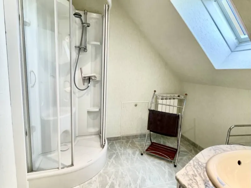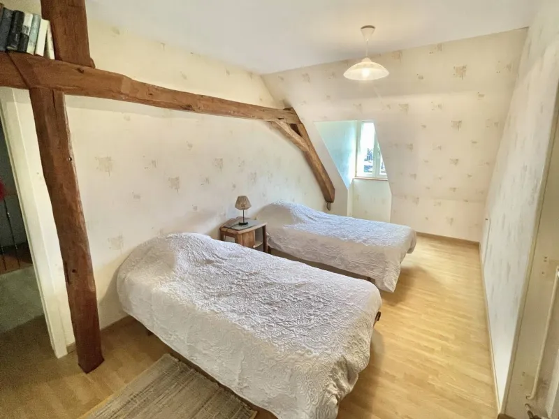 Étage : 1 chambre (1 lit 160), 1 chambre (2 lits de 90), mezzanine avec coin détente (canapé 2 pers), salle d'eau (douche), wc indépendant.